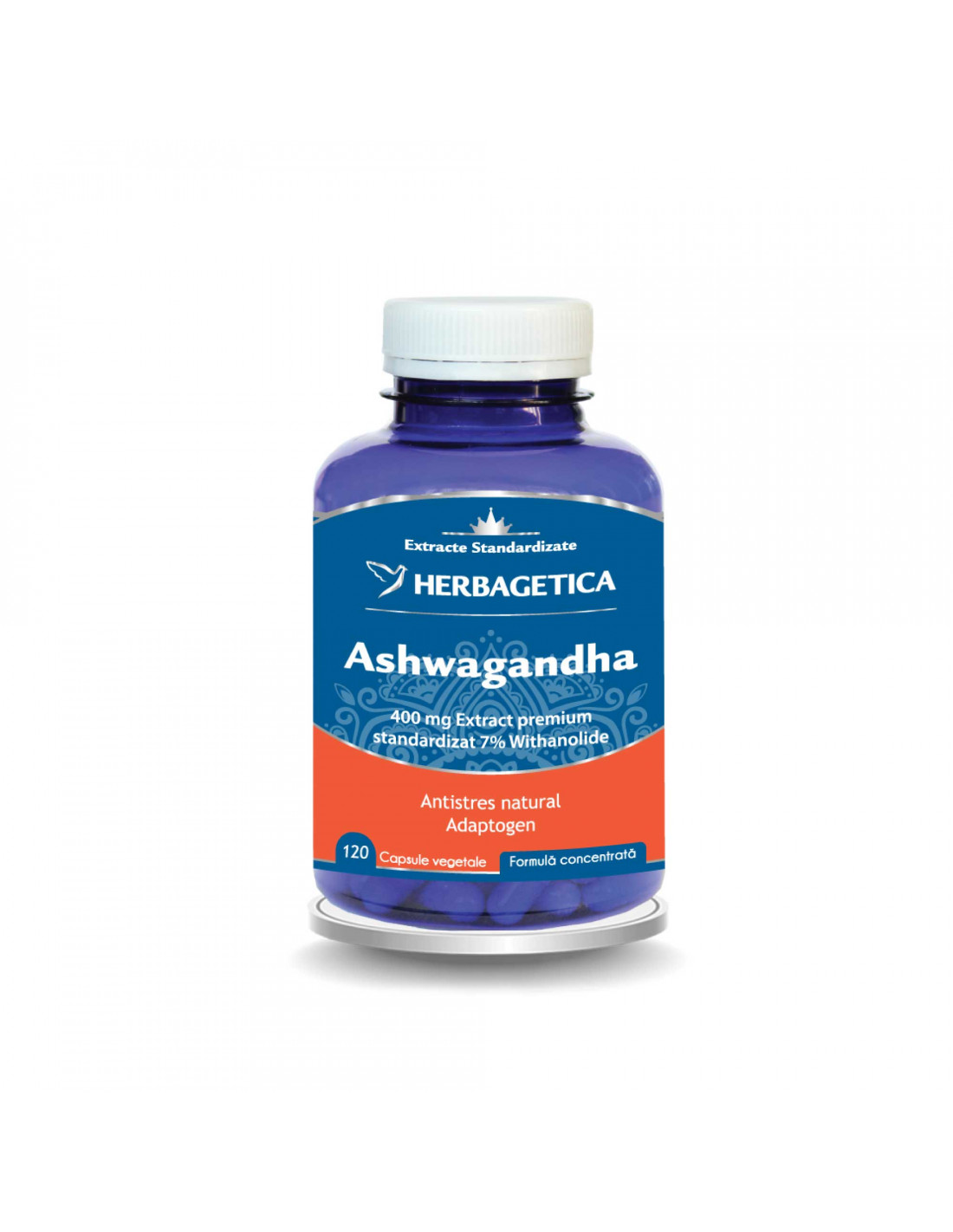 - Ashwagandha extract 5–8:1 (7% withanolide, 1% alcaloizi) – 400 mg