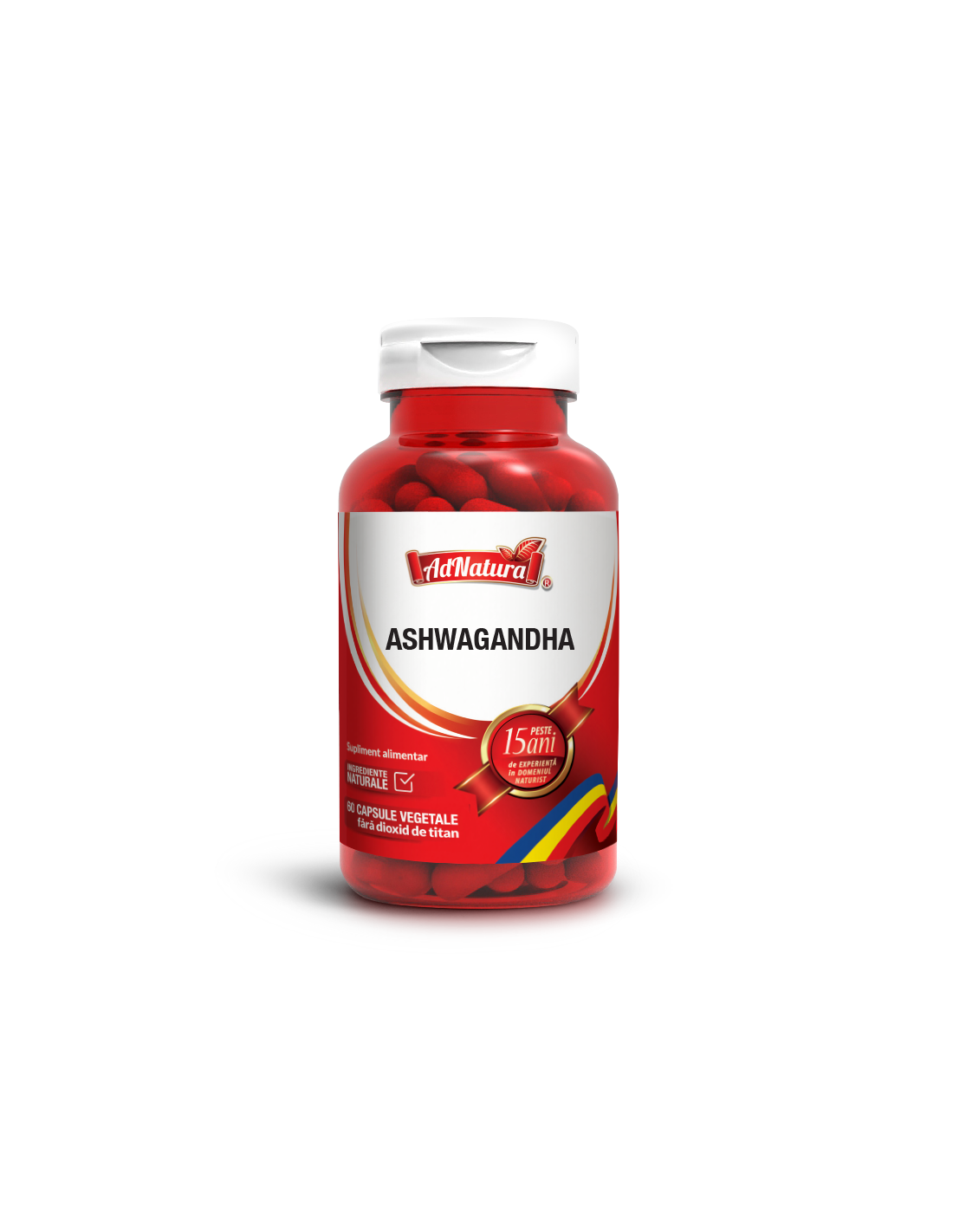 AdNatura Ashwagandha – 60 capsule este un supliment alimentar natural pe bază de extract concentrat din rădăcina plantei Withania somnifera (Ashwagandha), un adaptogen ayurvedic recunoscut pentru proprietățile sale de reducere a stresului și sprijinirea echilibrului fizic și mental.