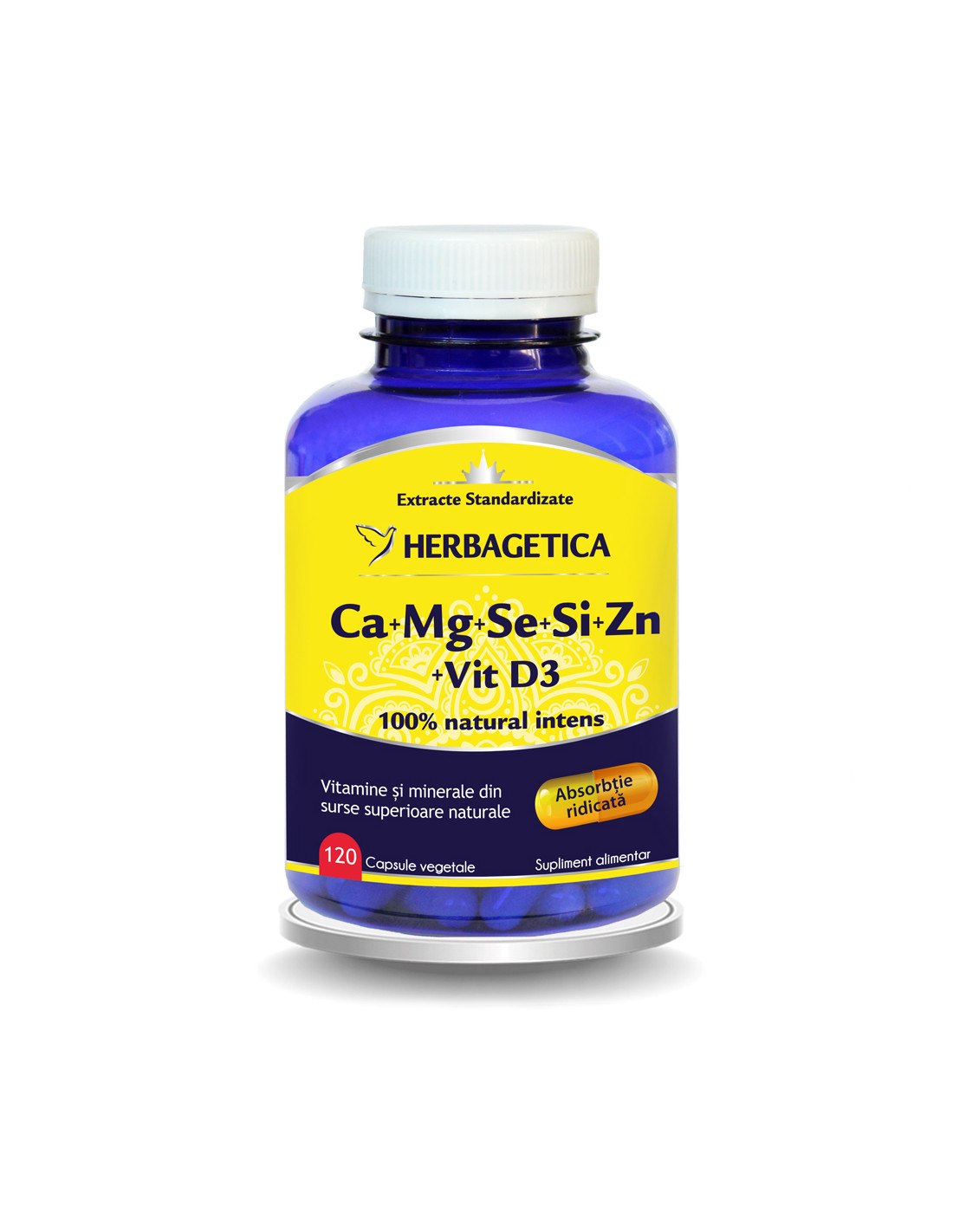 Ca+Mg+Se+Si+Zn organice cu D3, 120 capsule, Herbagetica