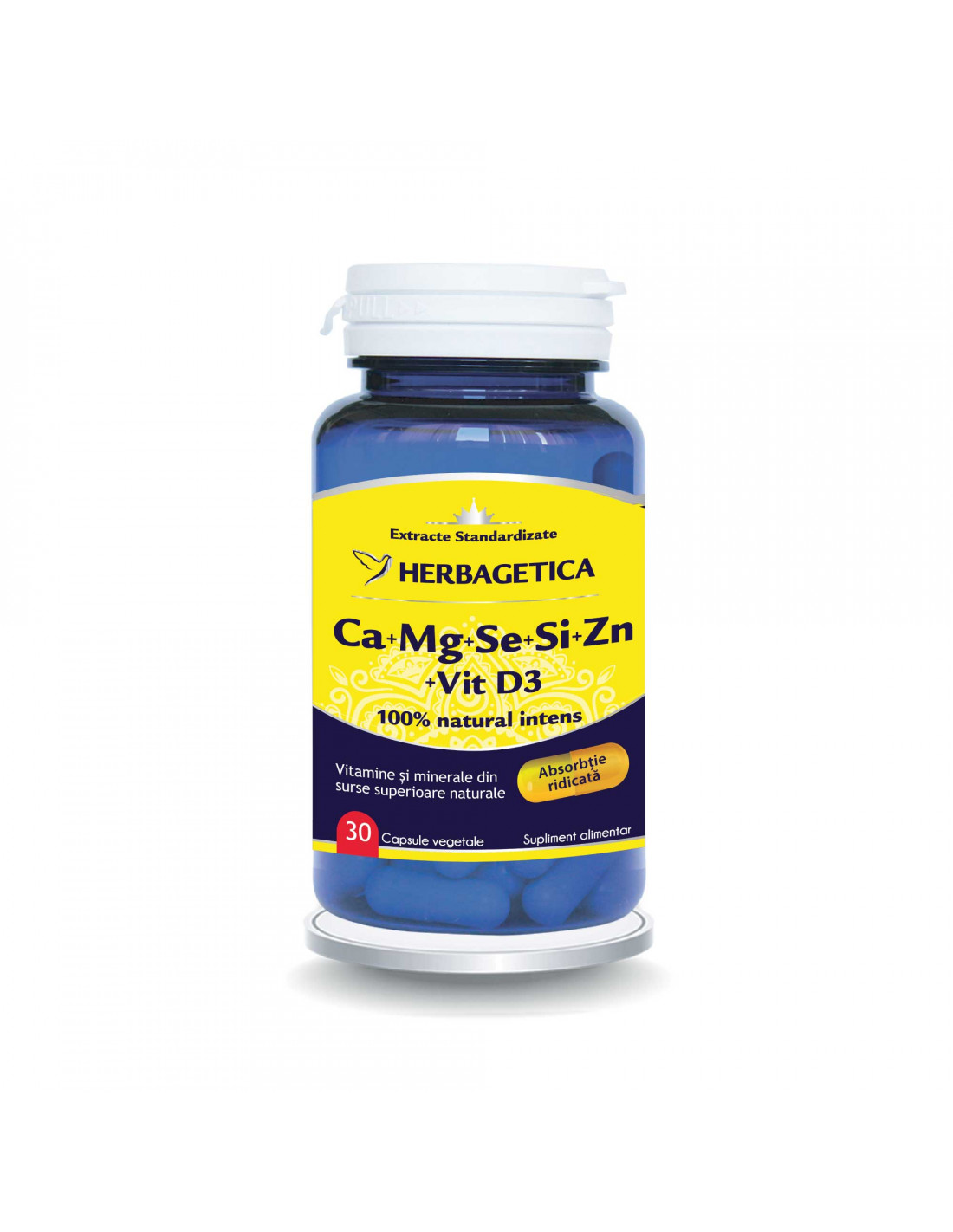 Ca+Mg+Se+Si+Zn organice cu D3, 30 capsule, Herbagetica