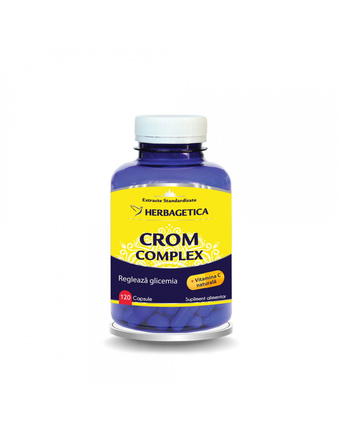 Crom Complex Herbagetica este un supliment natural formulat pentru sprijinirea glicemiei, metabolismului și sănătății cardiovasculare.