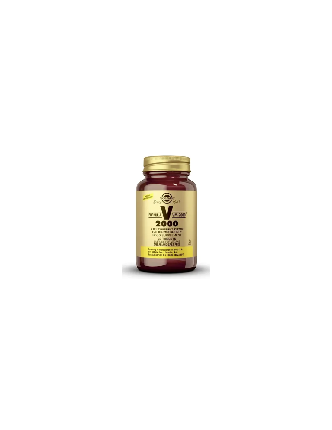Solgar VM-2000 este un complex multivitaminic și mineral de înaltă calitate, care oferă 47 de ingrediente esențiale — vitamine, minerale, aminoacizi și extrase botanice — într-o formulă premium concepută pentru susținerea energiei, imunității și protecției celulare. (Variantă de 30 tablete)