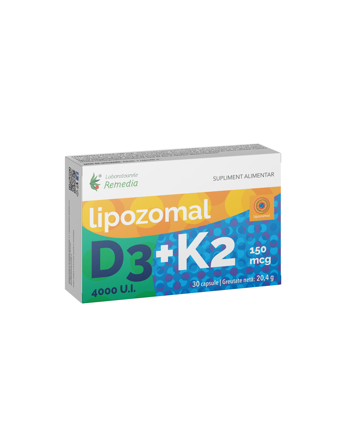 Supliment alimentar cu formulă lipozomală care combină vitamina D3 în concentrație de 4000 U.I. (100 µg) și vitamina K2 (menaquinonă-7) în doză de 150 µg, pentru susținerea sănătății oaselor, a sistemului osos și imunitar.