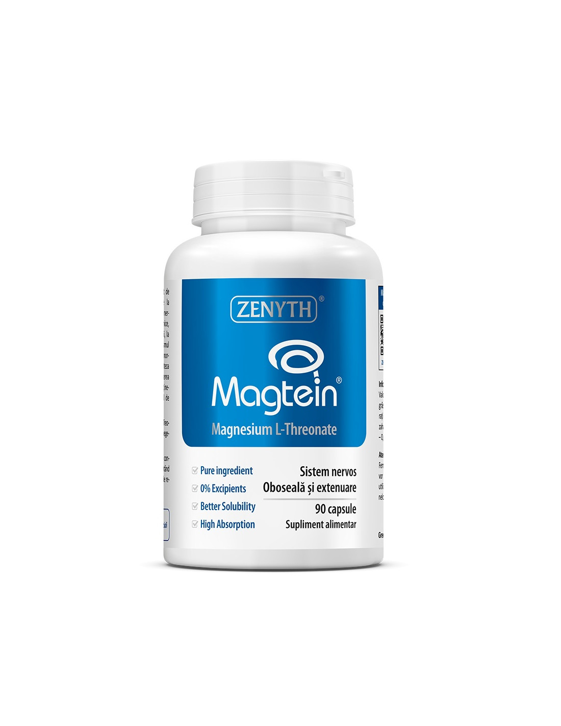 Magnesium L-Threonate Magtein® este un supliment alimentar pe bază de magnesium L-threonate, formulat special pentru a traversa bariera hematoencefalică și a susține sănătatea creierului, funcțiile cognitive și echilibrul sistemului nervos.