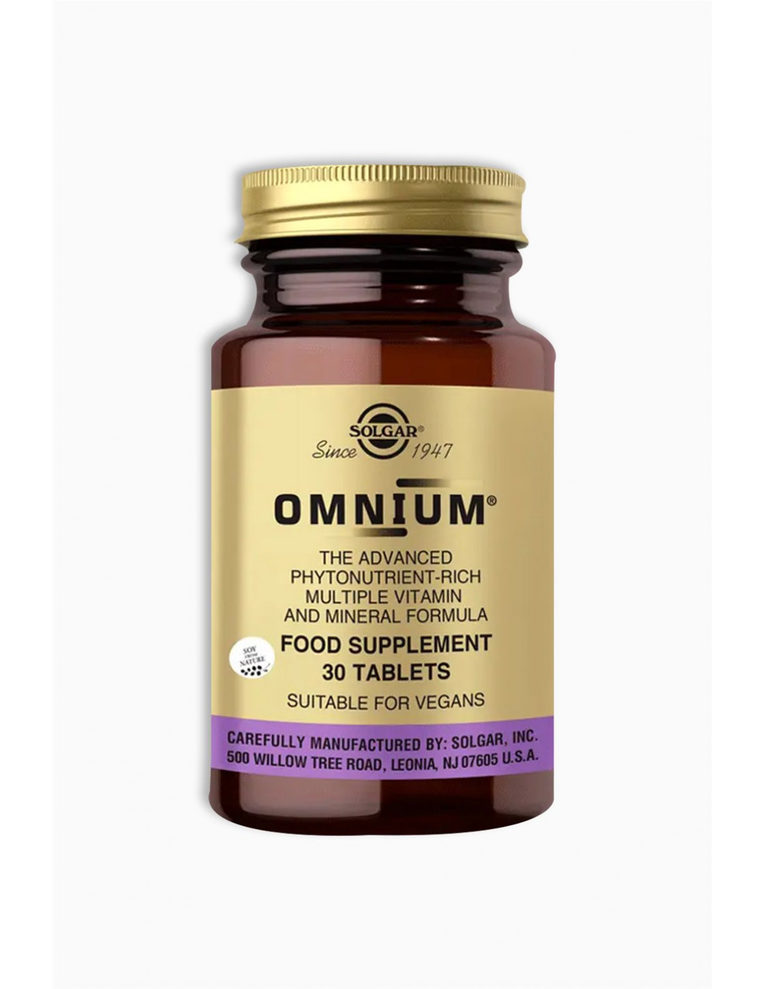 Solgar Omnium este un complex multivitaminic cu minerale și fitonutrienți — o alegere „premium” pentru sprijinul nutrițional complet al organismului.