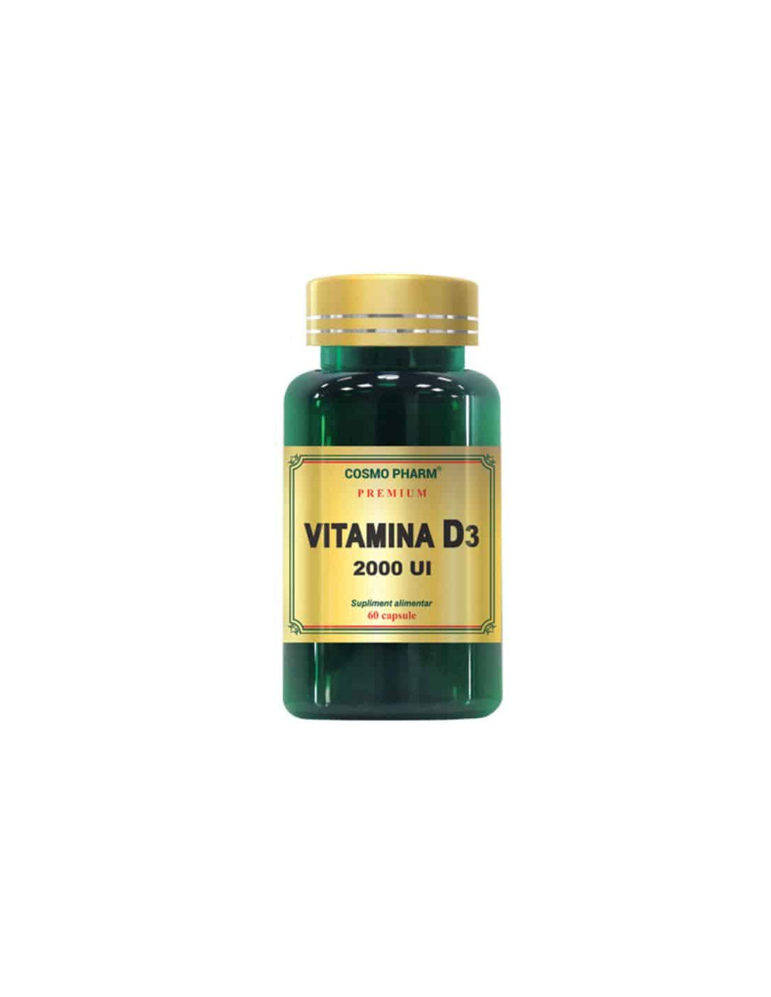 Vitamina D3 2000 UI – 60 capsule este un supliment alimentar din gama Premium Cosmopharm, conceput pentru absorbție optimă, cu beneficii pentru sistemul osteo-articular, imunitate și sănătatea generală.