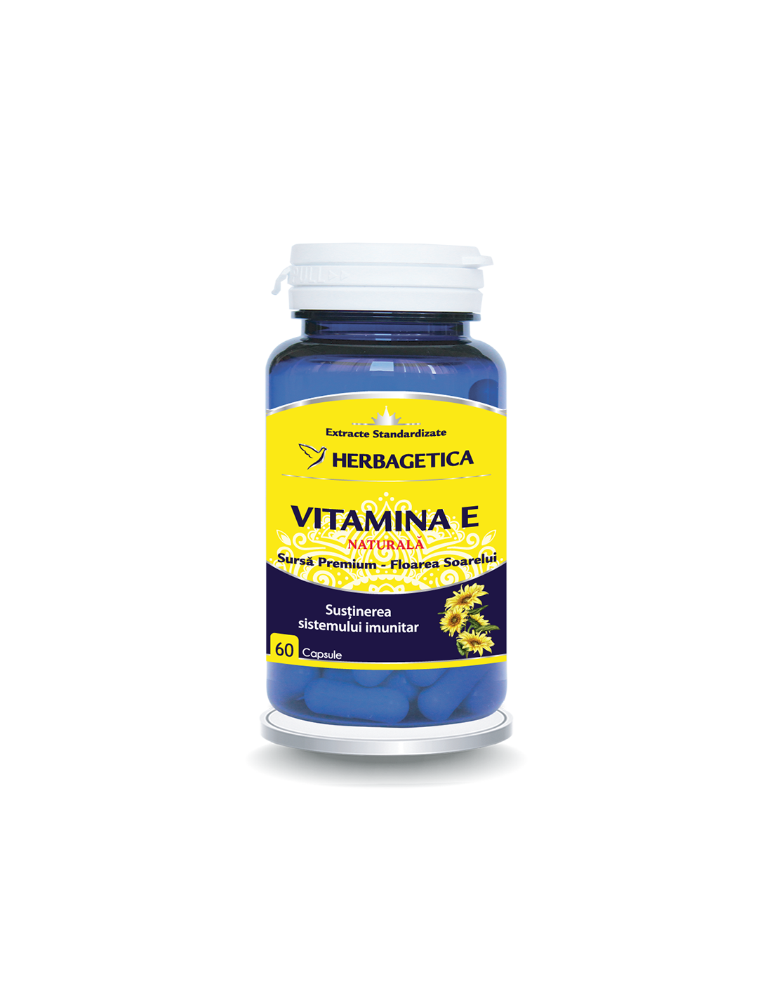 Vitamina E naturală (D-alfa-tocoferol) protejează membranele celulare împotriva oxidării, susține regenerarea țesuturilor, previne degradarea proteinelor din ochi și menține fluiditatea sângelui, reducând riscul formării cheagurilor.
